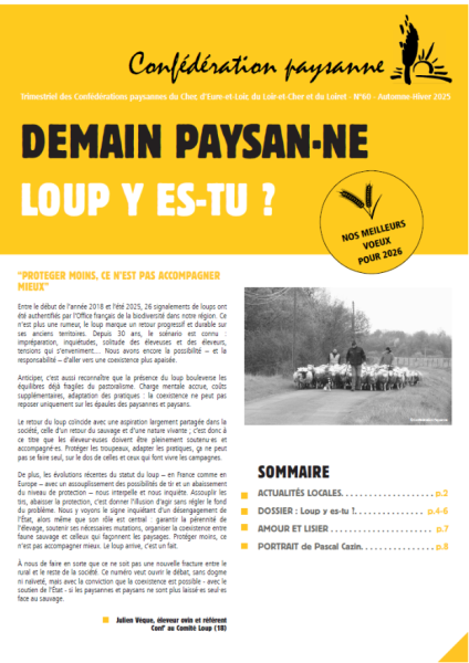Comme chaque année, la Confédération paysanne CVL a mené une étude sur un sujet à enjeux pour l'agriculture régionale. En 2025, nous nous sommes intéressés aux conditions de travail dans les ...